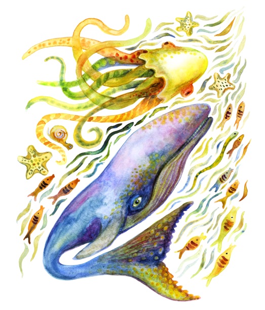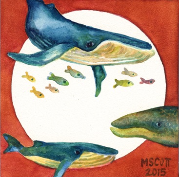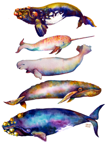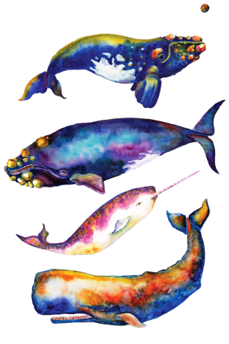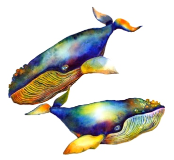 watercolor whales.